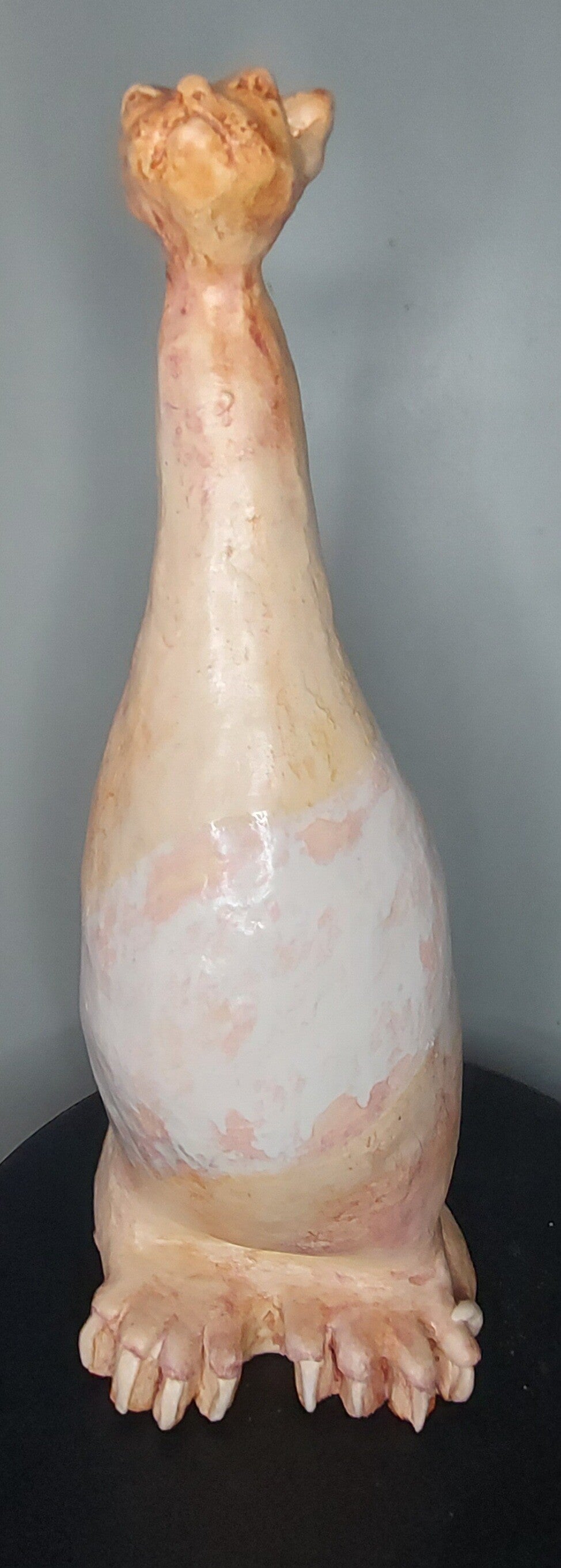 40 cm hoog beeld van witte fijne klei. Luna is deels glazuur en deels majolica techniek. Luna krijgt nog een houten sokkel. Vermelde prijs is zonder sokkel.